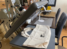 お客様よりご依頼を受け、エコバッグや保冷バック、マスク等にロゴや社名などを転写機を使用しプリントする作業。